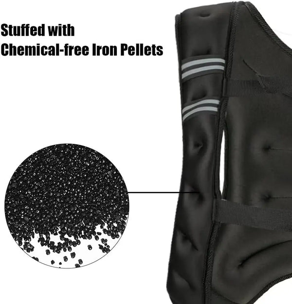 Discover the comfort and safety of our weighted vest, designed to enhance your workouts with reflective strips and a snug fit for all activities.